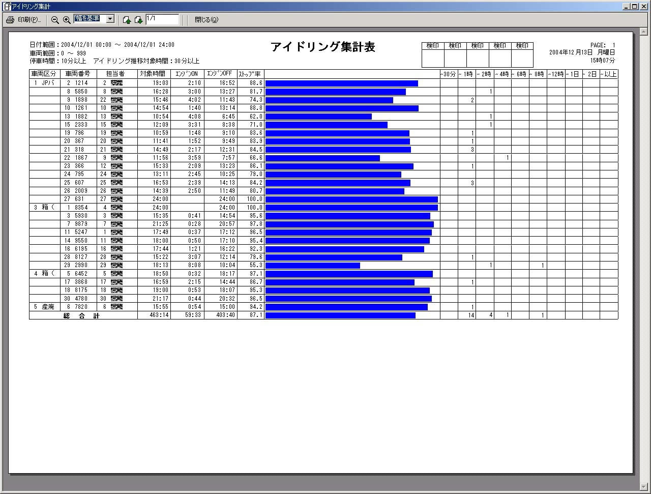 | アイドリング集計表 |