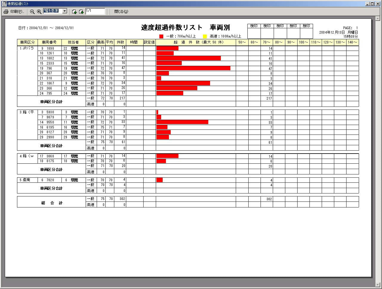 速度超過件数リスト 車輌別 |