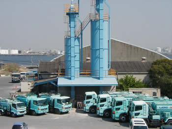 宇部興産褐嚼ン資材カンパニー独自の工法であるSL業務の委託を受け、名古屋SL出荷基地での受け入れ・管理出荷作業及びローリー車による輸送及び施工のオペレーター作業をしています。